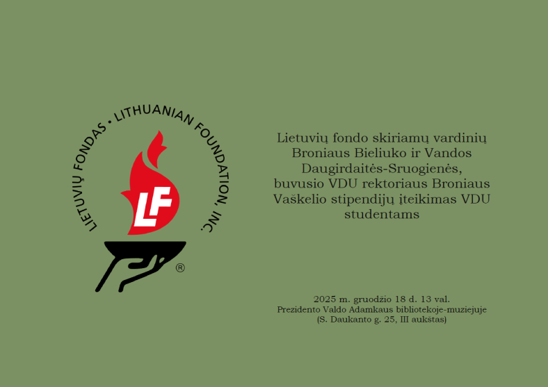 Šiais metais gruodžio 18 d. 13 val. Prezidento Valdo Adamkaus bibliotekoje-muziejuje (S. Daukanto g. 25, III aukštas) bus įteiktos Lietuvių fondo skiriamos vardinės Broniaus Bieliuko ir Vandos Daugirdaitės-Sruogienės, buvusio VDU rektoriaus Broniaus Vaškelio vardinės stipendijos.